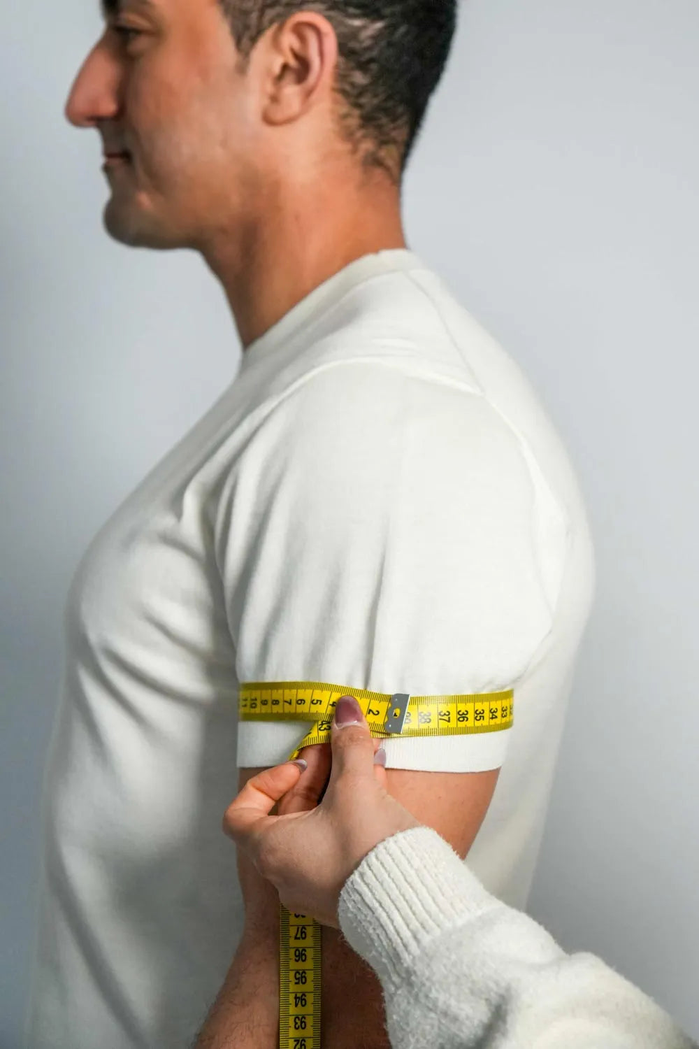 Messen Sie um die breiteste Stelle des Bizeps (nicht gebeugt). Achten Sie darauf, dass das Band eng genug anliegt, um nicht zu verrutschen, aber nicht so eng, dass es die Haut einklemmt.